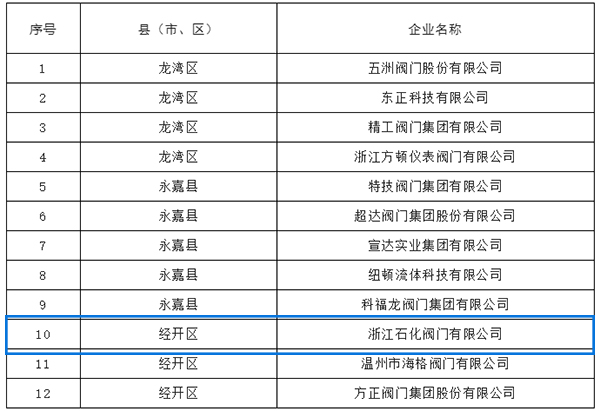 浙江石化閥門有限公司擬入選溫州市綠色低碳工廠
