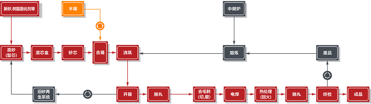 公司產品采用先進的堿性酚醛樹脂砂生產工藝,配備有中頻爐6噸1臺、3噸2臺、1噸1臺,50噸和20噸天燃氣熱處理爐各一套、10噸電阻熱處理爐2臺。配備有現代化的檢測和材料試驗設備:直讀式光譜分析儀、金相分析儀、機械性能試驗、低溫沖擊試驗、MT、PT、UT、RT等完善的檢測設備,由專職檢驗人員進行分析和檢測,以確保客戶對鑄件質量的要求。